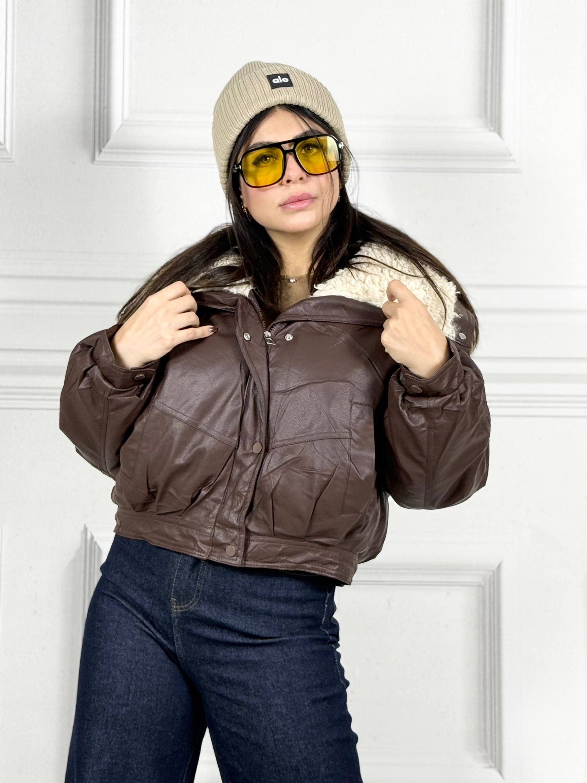 کاپشن خز چرم next
